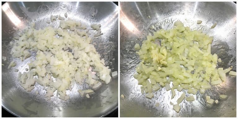 Heat the oil in a small saucepan and cook the onions just until soft and translucent. Do not brown them. Add the garlic and cook for another minute.