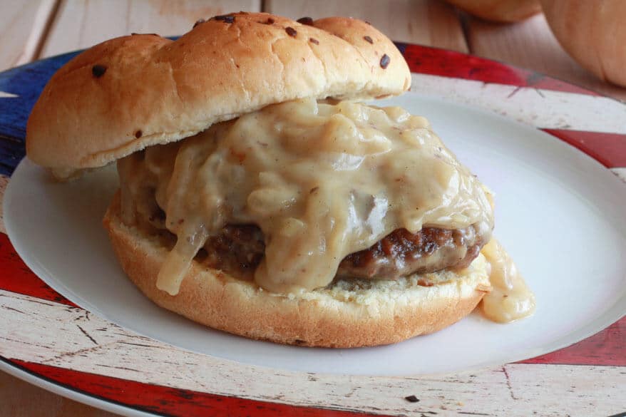 Another dish inspired by our family vacation to the South last Summer. ย A beloved, traditional Southern dish is chicken-fried steak smothered in gravy. ย Sweet onions, like Vidalia onions (a treasure of the South), make for an especially wonderful gravy. ย I had a craving for a burger and, being that it’s the middle of Winter right now, I wanted a meal that would satisfy that craving and also be a warming comfort dish. ย And so the idea of these Chicken Fried Steak Burgers with Vidalia Onion Gravy was born.