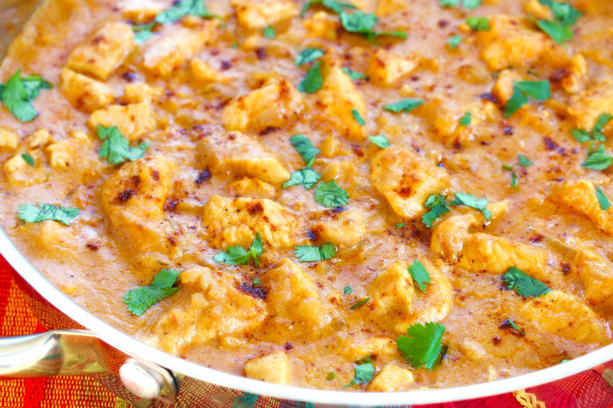 - Heat the oil in skillet over medium-high heat and cook the onions until soft and translucent, 5 minutes. Add the garlic and ginger and cook for another 2 minutes. Add the chicken and cook for 3-4 minutes. Add the sweet chili sauce, tomato sauce or ketchup, chili powder, peanut butter, and sugar and stir to combine. Add the coconut milk and salt and bring to a boil. Reduce the heat to medium-low, cover and simmer for 20 minutes, stirring occasionally. If the sauce is too thin for your liking, dissolve a tablespoon of cornstarch in 2 tablespoons of water, stir it into the sauce, and simmer or another minute until thickened. Add salt to taste.Serve over steamed rice garnished with cilantro and chopped roasted peanuts.