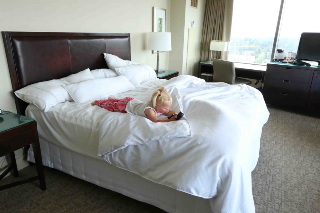 The next morning the room also lit up bright and beautifully and our daughter made herself right at home lounging on the bed and playing with the room’s phone. Our apologies to the Westin Bellevue if she made too many calls to the front desk or restaurant!