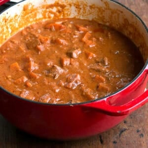 An incredibly rich, delicious and traditional African peanut stew recipe, this Domoda tastes even better the next day!ย Domoda is the national dish of Gambia and deservedly so because it is absolutely fabulous comfort food!