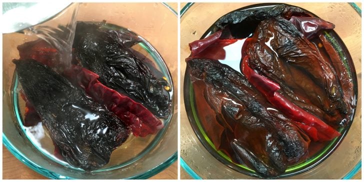 Pour the boiling water or chicken broth over the peppers, cover the bowl and let them sit for 20-30 minutes until soft.