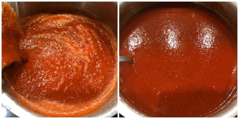 - Cook the sauce. After pureeing and straining the sauce, cook it. As flavorful as the sauce already is, don’t skip this step, it is vital for bringing out the FULL depth of flavor of the sauce.