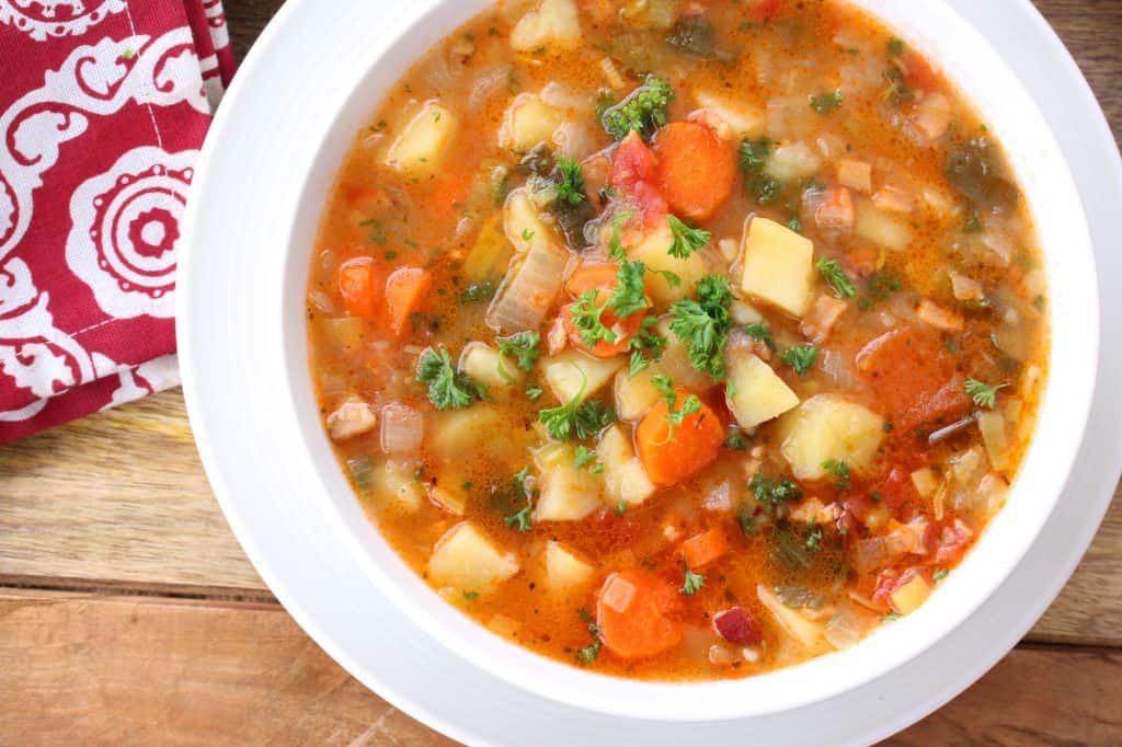 There are many regional versions of potato soup in Germany, each region adding their own unique touch. But the two general types are either brothy or creamy, and either type can be found throughout every region of Germany. This version is a classic brothy potato soup (Bunte Kartoffelsuppe, or “colorful potato soup”) that’s packed with healthy, colorful, and flavorful veggies, very much like I made it that first time as a young tween in Germany, and I’m confident you’re going to LOVE it!