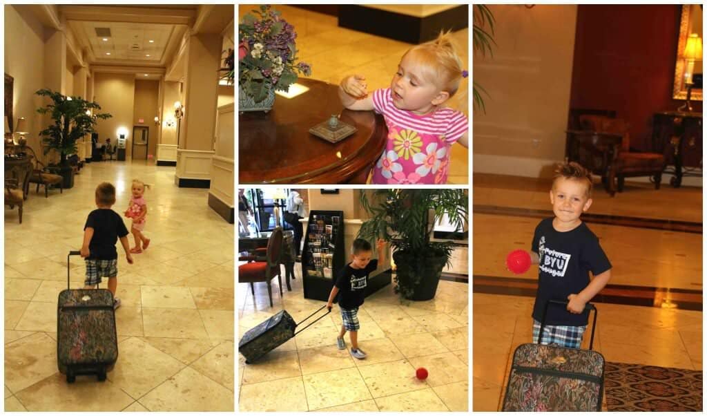 After breakfast we checked out of the hotel, but not before our daughter performed a detailed hotel inspection and our son played lobby-ball.