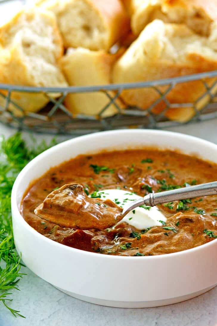 As delicious as this is as a soup, this is equally delicious as a sauce! Simply add an additional tablespoon of flour when you make the roux and serve this Hungarian mushroom sauce over egg noodles. It’s incredible! Either way you serve it, it’s a winner.