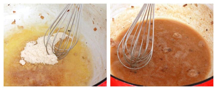 Melt 3 tablespoons of butter in the same pan and stir in the flour, constantly whisking for 6-7 minutes or until the mixture is a rich, caramelized brown.