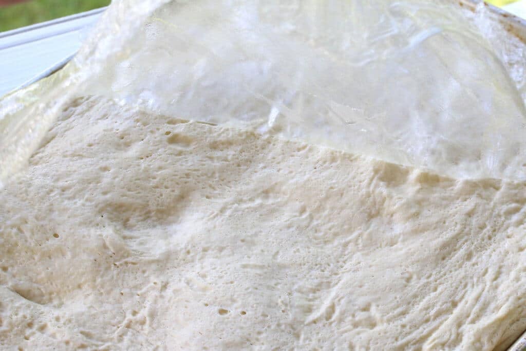 There are regional variations of focaccia throughout Italy, including sweet variations like focaccia dolce that uses raisins and honey. Today we’re making the original focaccia, focaccia alla Genovese, which is savory.