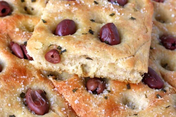 A thoroughly authentic Italian Olive Rosemary Focaccia recipe with all the tips and tricks you need for achieving that incredible texture Italian focaccia is renowned for – those fluffy air pockets, chew interior, and perfectly crispy exterior. We’re adding rosemary and olives but feel free to omit either or both or add toppings of your choice!