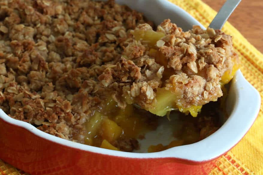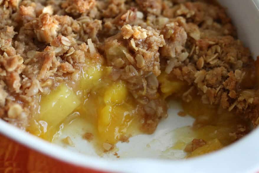 My husband devoured a plate of it in seconds. ย There was one serving of it left the next day and he said it was even better. If you like pineapple and mango and coconut and ginger…and crumble….ooh-la-la, prepare to fall in love!