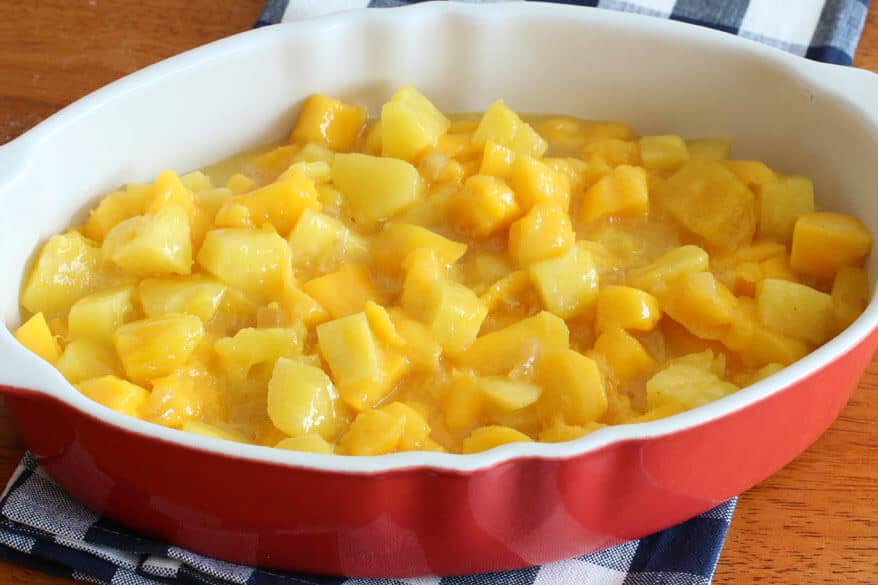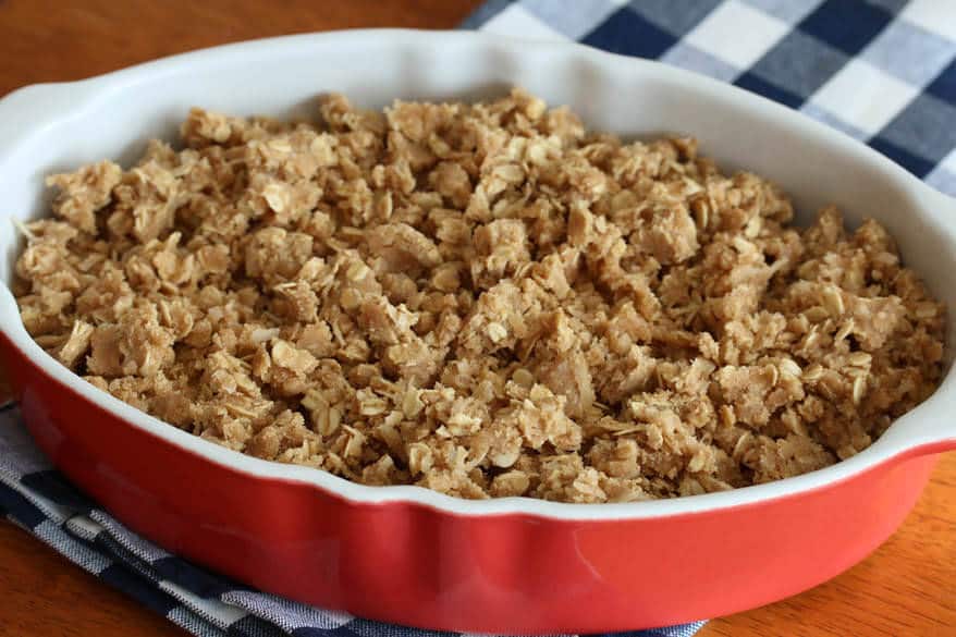Spoon the fruit mixture into an 8×8 inch baking dish or equivalent.