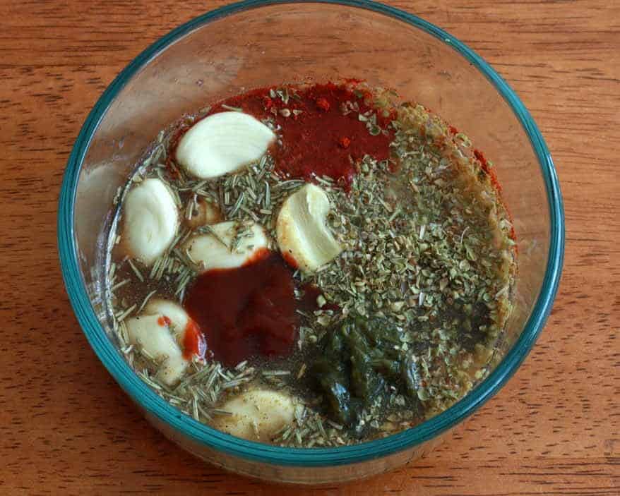 - Combine all the marinade ingredients in a food processor and blend until smooth.
