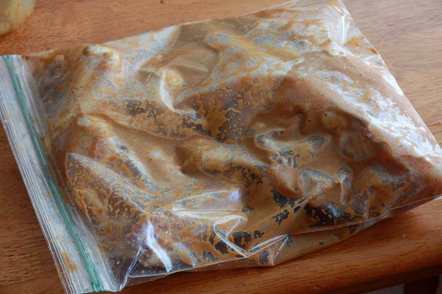 - Loosen the skin on the chicken and rub some marinade under the skin. Place the chicken or chicken pieces in a large ziplock bag and pour the marinade over. Swish around to even coat the pieces. Marinate for at least 6 hours or overnight.