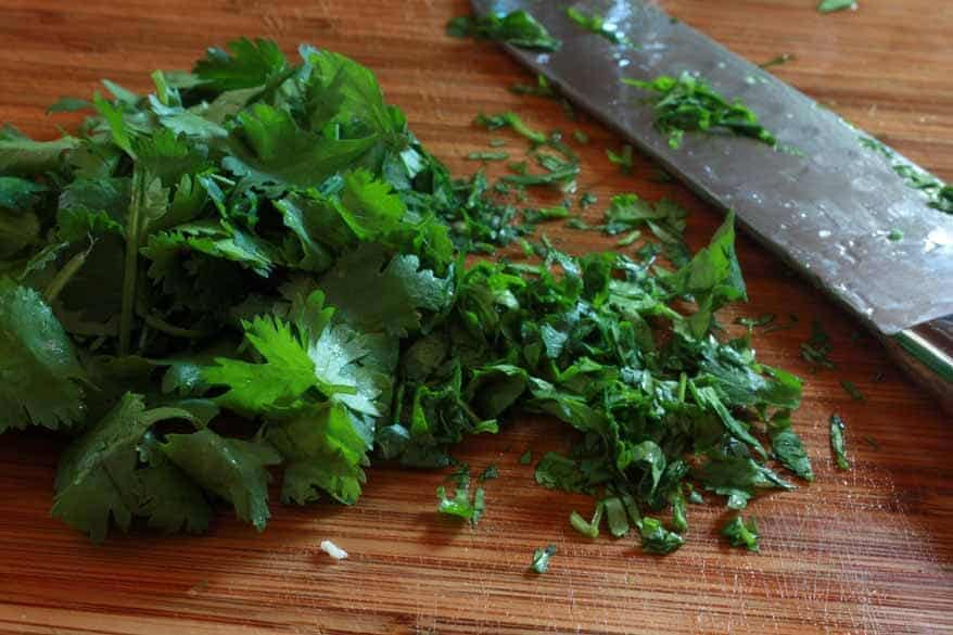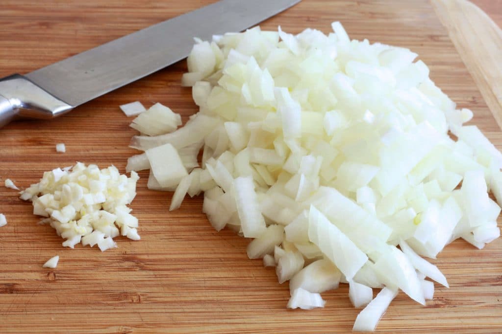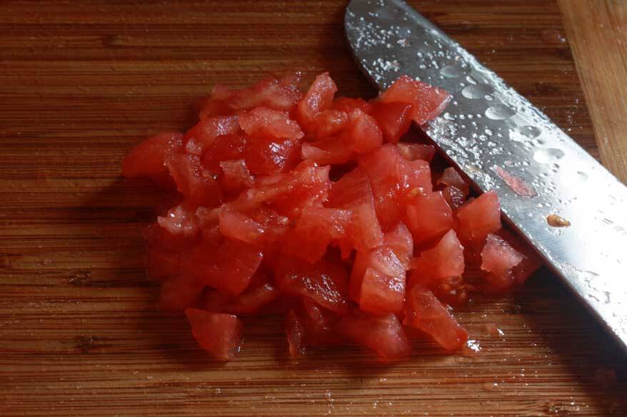 Finely chop the tomatoes. ย I prefer to do it by hand, but you can also use a food processor.
