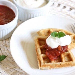 Oat and Buckwheat Waffles with Rhubarb Compote