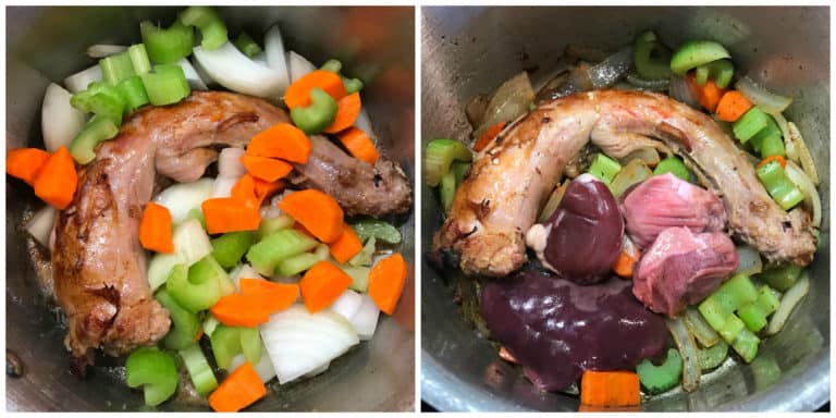 Bring it to a boil, reduce to a simmer, and simmer with the lid partially open for 1 1/2-2 hours. You want the liquid to reduce so that you’ll have a rich broth. You’ll need 2 cups of the finished broth.