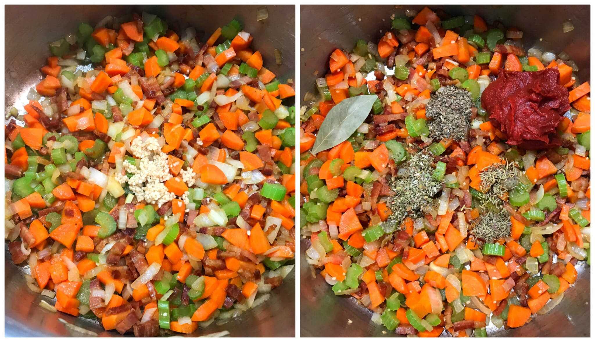 Add the tomato paste and herbs and cook for another 2-3 minutes.