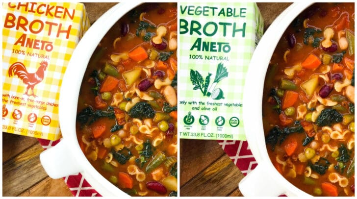 Really good hearty, healthy soup! I used about 1/2 of the tomato paste because I didnโt want it too tomato-ey. Left out sugar, green beans and pease. Used spinach, but I think kale would be better. Also went lighter on the Italian spices, only a pinch of oregano and thyme, full basil, 1/4 tsp finely chopped fresh rosemary. I didnโt want the soup to taste like spaghetti sauce. But all my changes were just my taste. Also agree that Aneto is best tasting chicken broth in the stores.