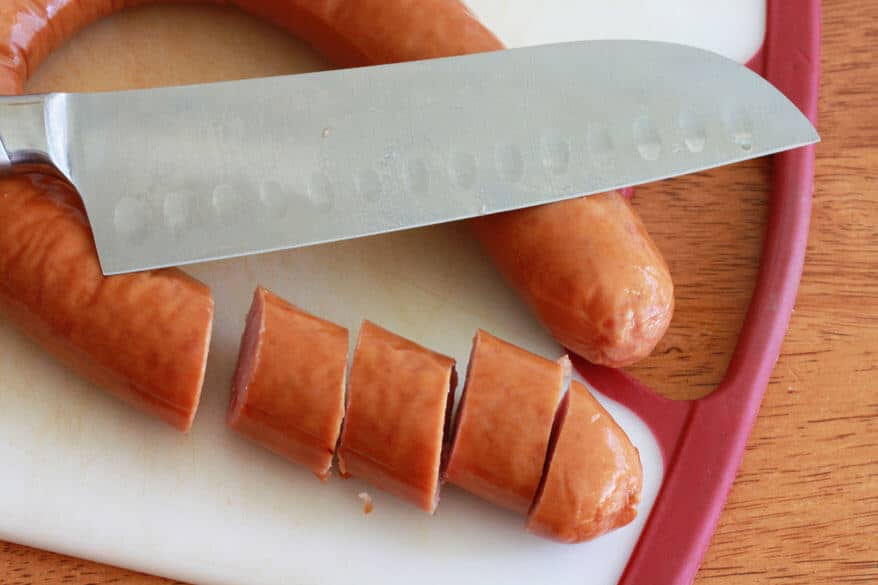 - 1 14 oz package Hillshire Farm Polska Kielbasa, cut into 1-inch chunks