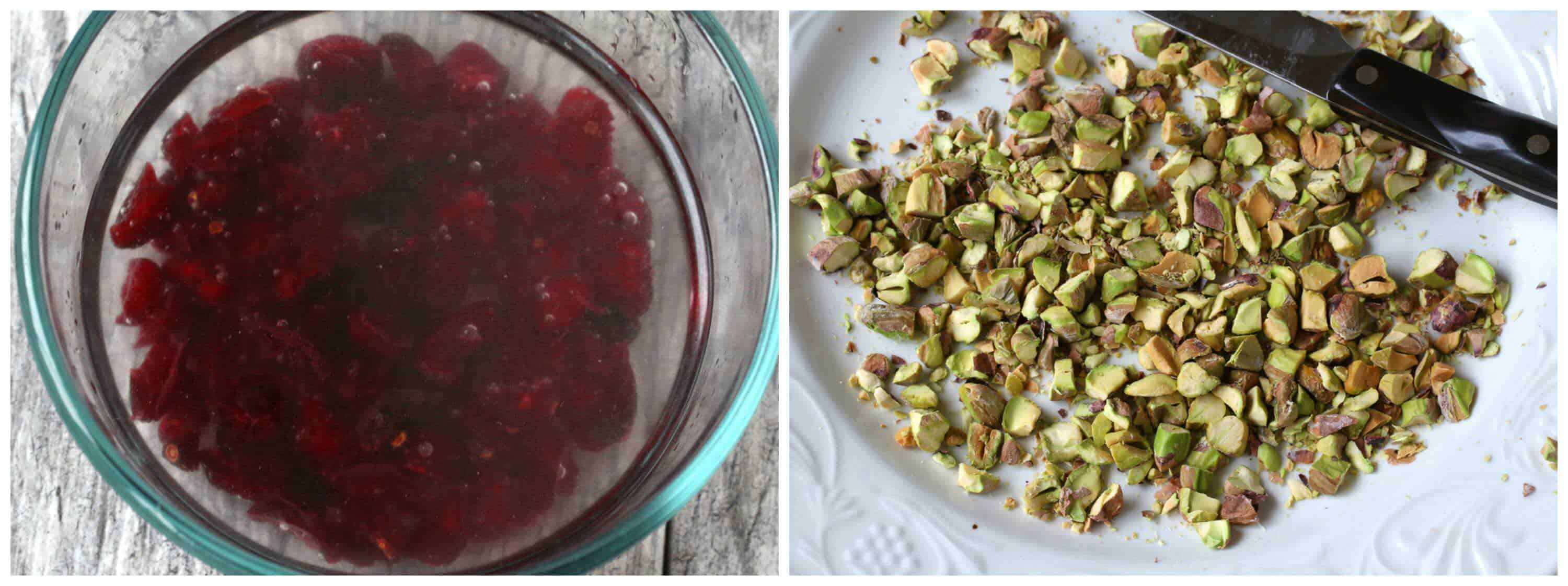 For this recipe we add the cranberries and pistachios in very last instead of simmering them in the custard. ย There are two reasons for that: ย Color and Flavor.