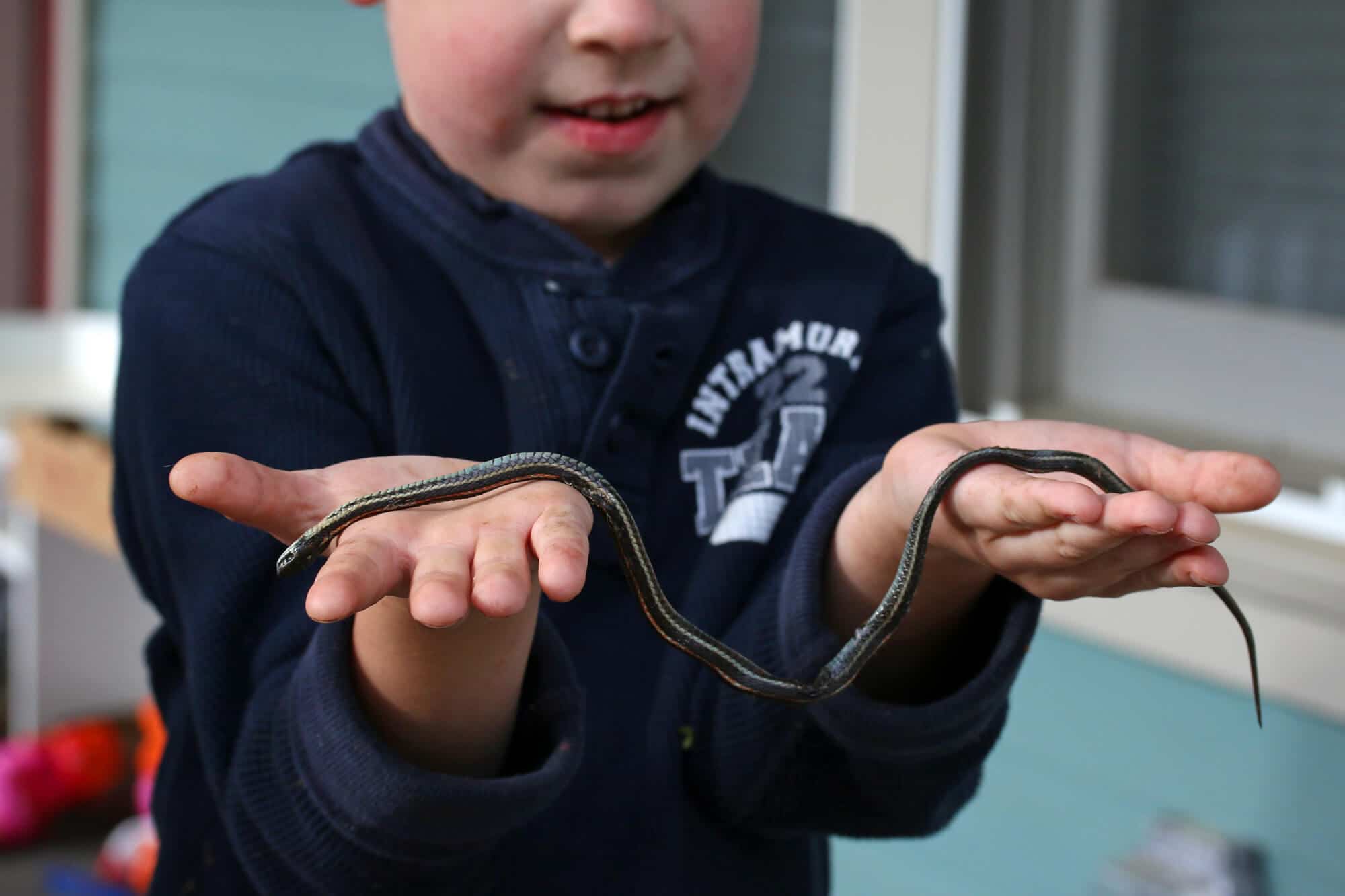 A garter snake may be harmless but still….YIKES!!! Turns out it was already dead.